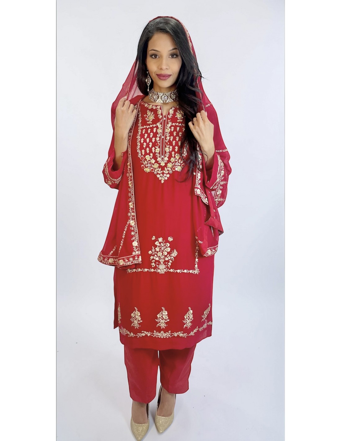 Tenue Pakistanaise Femme Luxe Brodée main-rouge  - 1